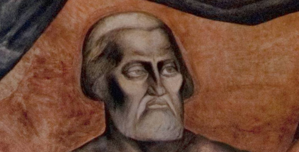 The famed muralist Orozco created this fresco in 1926 in Colegio de San Ildefonso in Mexico City during. It was created at the height of the Mexican muralist movement, and is arguably his most famous public mural. Cortés and Malinche are sitting next to each other, and their skin tones are stark contrasts of white and brown. Cortés looks up and into the distance, his hands and arms in possessive positions regarding Malinche. Malinche looks towards the ground, in a relatively more relaxed and submissive stance. Orozco alludes to the notion that Malinche is the Eve of Mexico, which is also echoed in Octavio Paz's El laberinto de soledad. The corpse of an Indian lies at their feet. Scroll through the gallery for closer looks of the mural, and click here to visit an interactive 360 photograph of the mural.